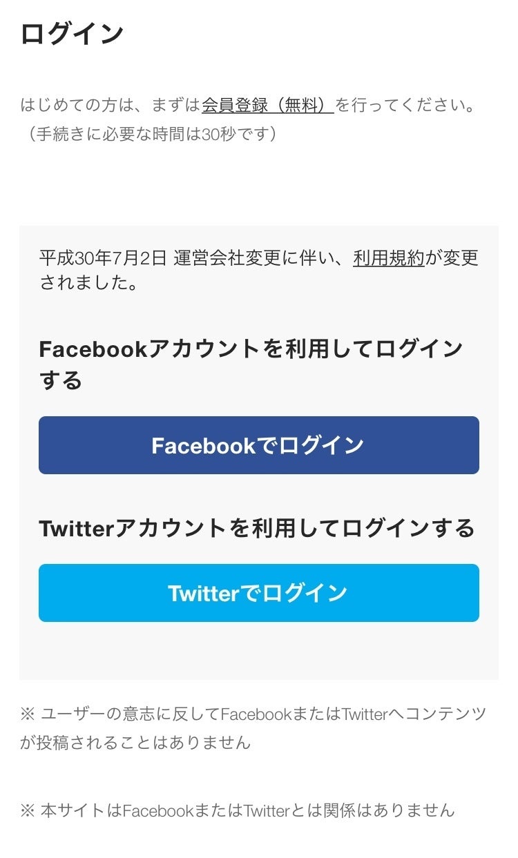 Facebook、Twitterのアカウントをお持ちの方はこちらからログイン。
