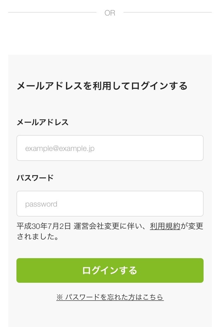 一度、メールアドレスにてご登録されている方は下記からログイン。