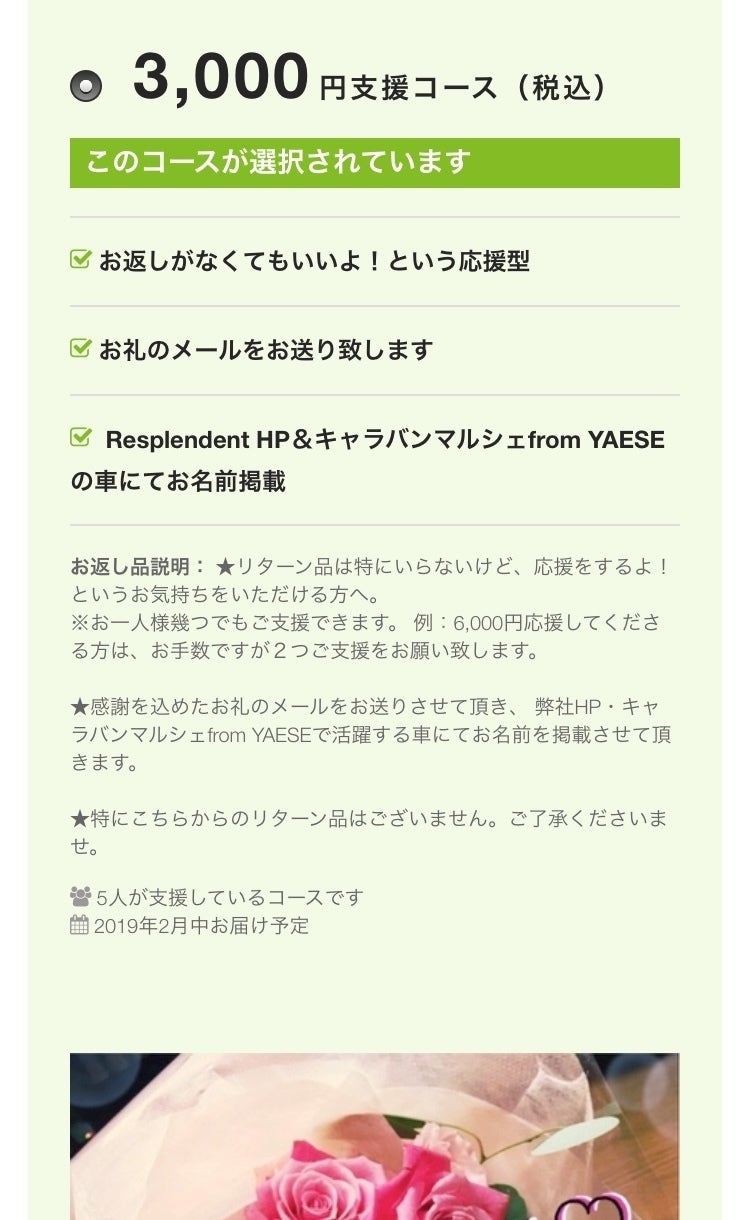 ※ 頂いた支援金に関しては、期間内に目標金額に達しなかった場合、責任を持ってお返しいたします。