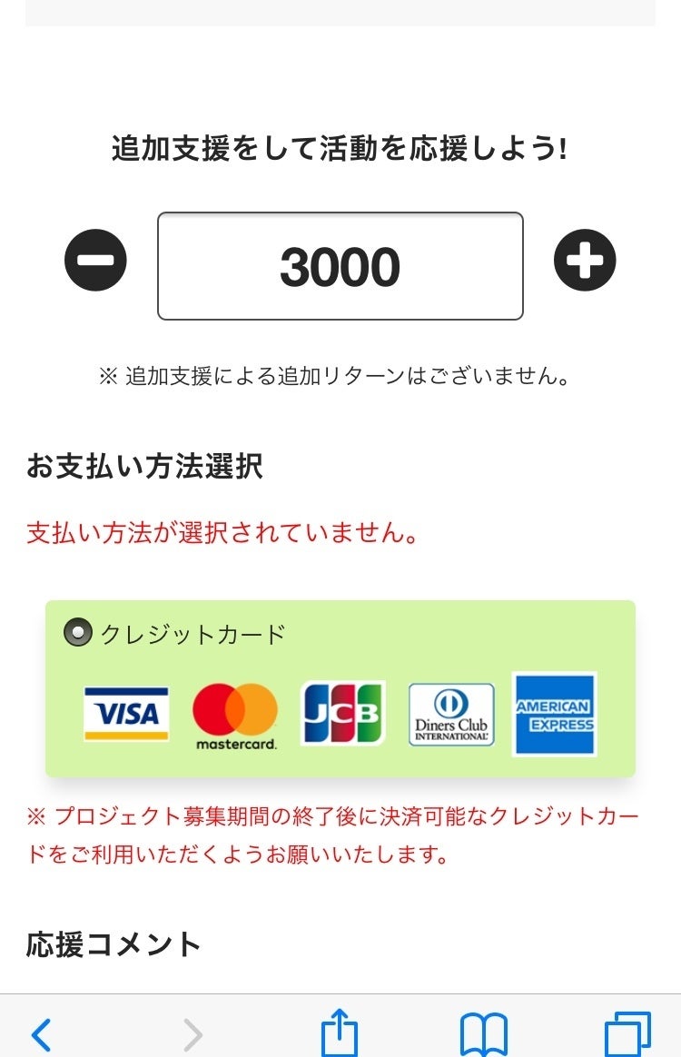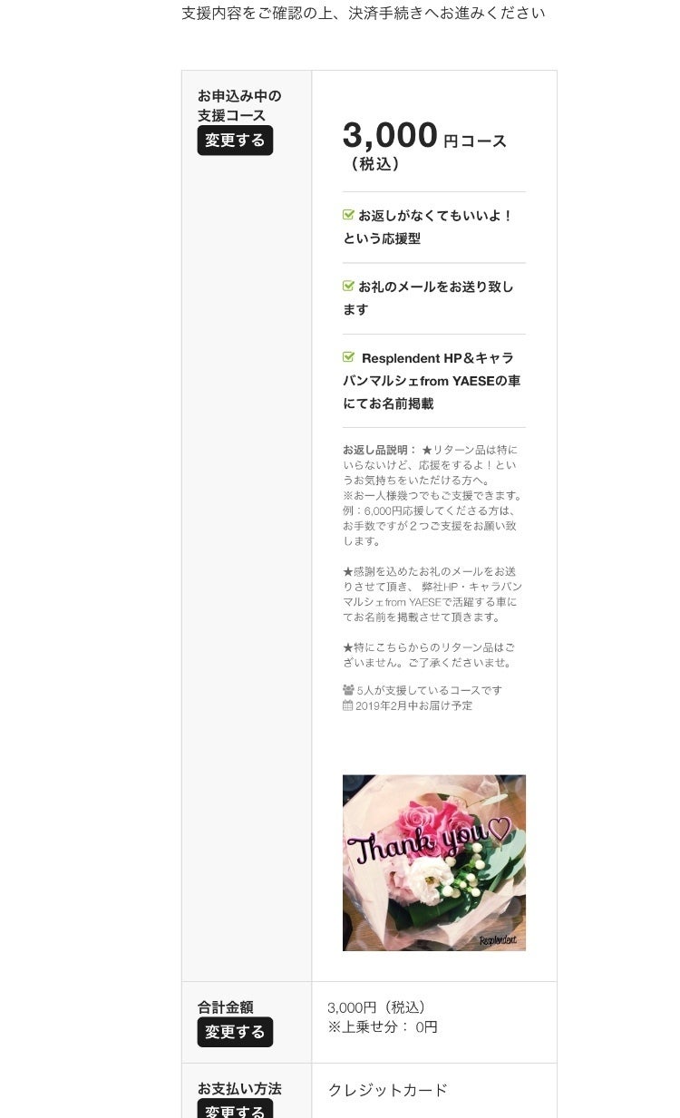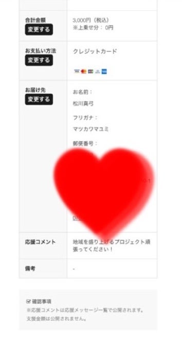 ※お支払い頂く際の手数料は、ご支援者様ご負担になります。