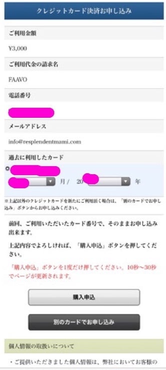 こちらのページにて、クレジットカードの内容を入力して頂き完了となります。