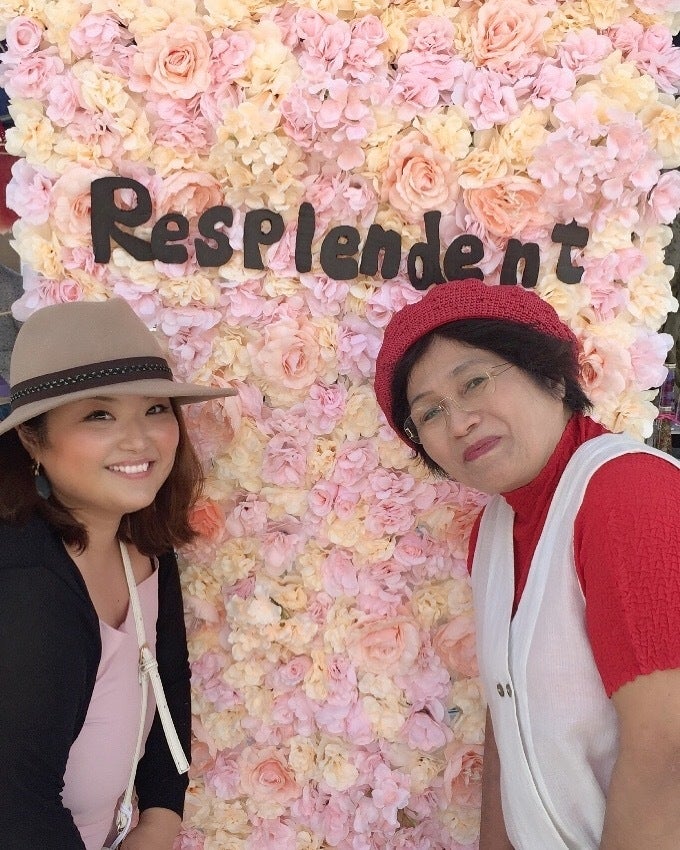 フラワーウォールで、一緒に写真を撮りました