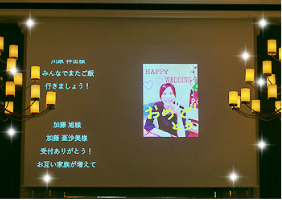 例えば、新郎新婦に投稿された中から写真を選んでもらい、後ほどスクリーンで発表します。