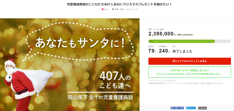 クラウドファンディングで支援者みんながサンタ仲間となった。