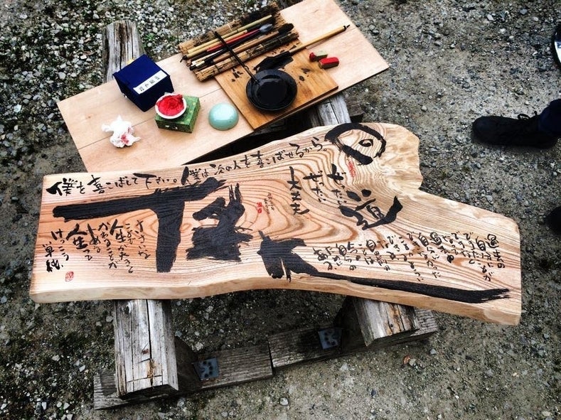【酔書家『かずさん』の木製筆入れ看板】