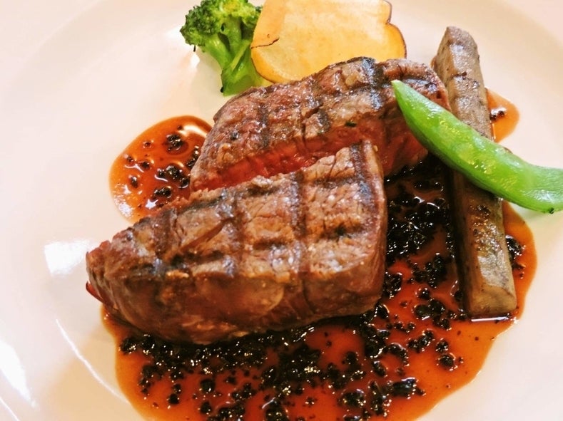 ①1階では小林市の食材を使った西洋料理を楽しめます。
