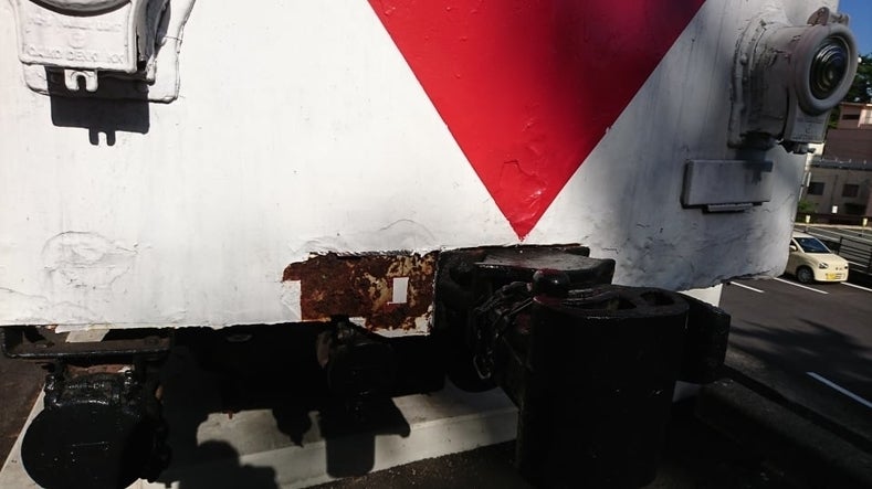 30年近く動かすこともなく、風雨にさらされていた車両の塗装の剥離や錆の進行は深刻なものでした。