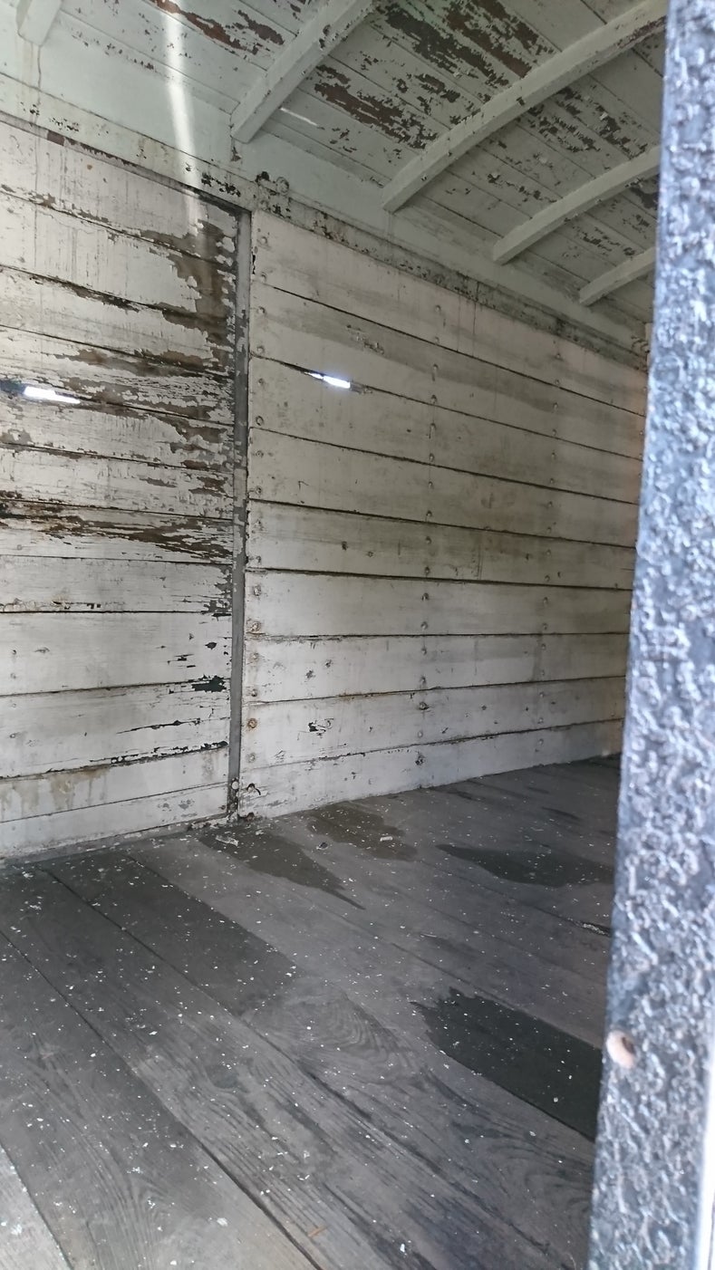 ▲ホカフ9の内部。木材は腐敗し、塗料も剥離しています。