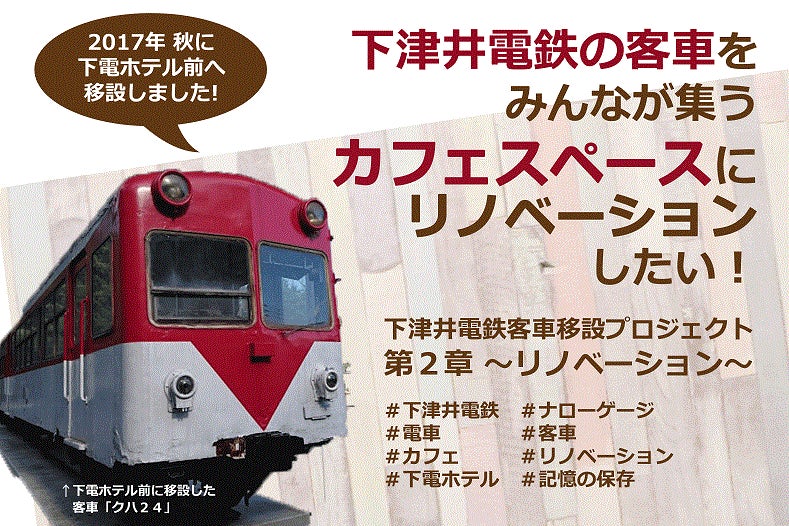 今回のプロジェクトの目的は現役当時の車両を復元し、あらゆる皆様に気軽に利用していただくことで、下津井電鉄の「記憶の保存」を図ることです。