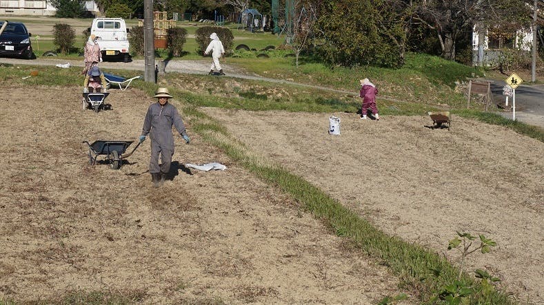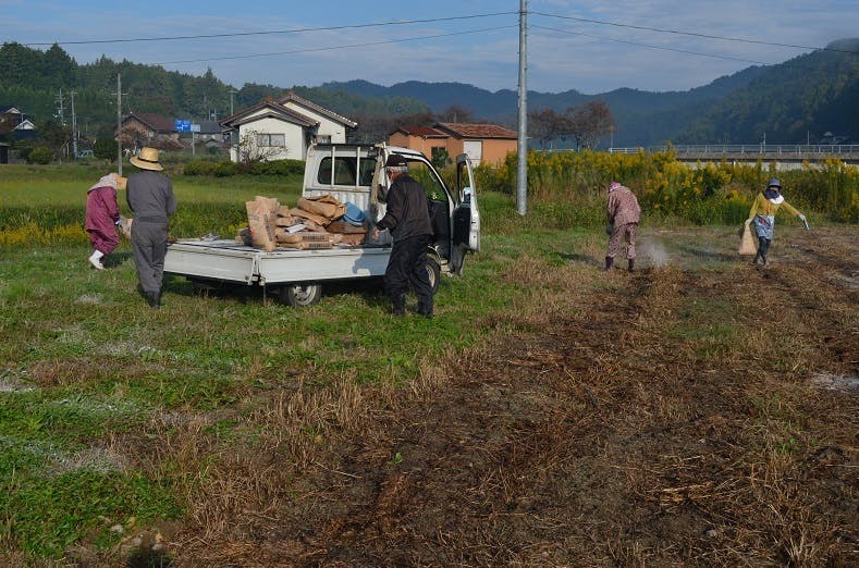 (鶏糞を散布)