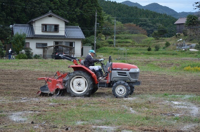 (レンタルのトラクターで耕す)