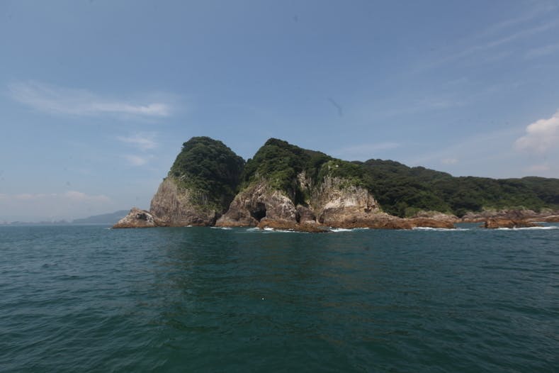 支援コースの定置網は、庵川漁港から10分程度の場所にあり、東側には見る人を圧巻する柱状節理を有する無人島乙島を見ることができます。