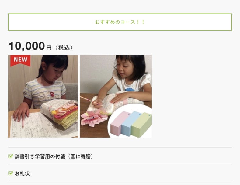 お名前を記載したレシピ本1冊に、保育園からのお礼状を添えてお届けします。