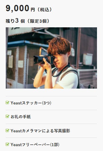 本リターン品には、Yeastが誇る素晴らしいカメラマン達による写真撮影を設けてます。ぜひご覧ください!