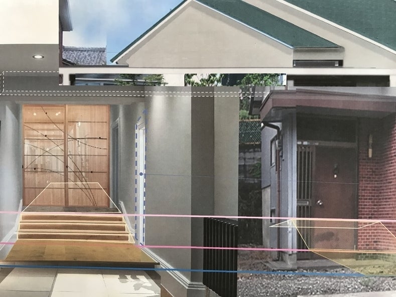 (玄関の改装イメージです。左が改修後イメージ。右が現在)