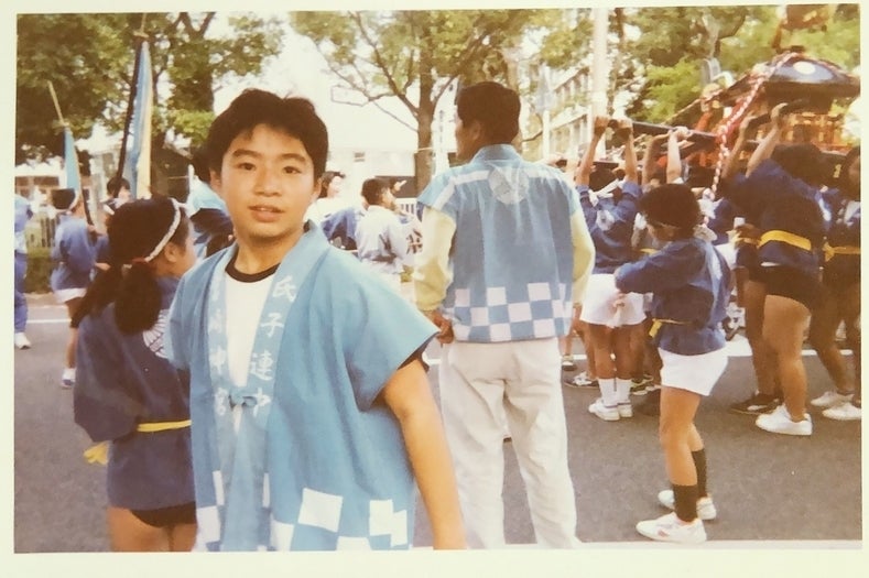 (写真:宮崎のお祭り 神武大祭 神武さまに参加する小学生の頃の私)