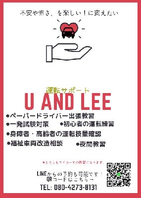 現在、U and Leeではお客様のマイカーを使用しての教習を行っております。
