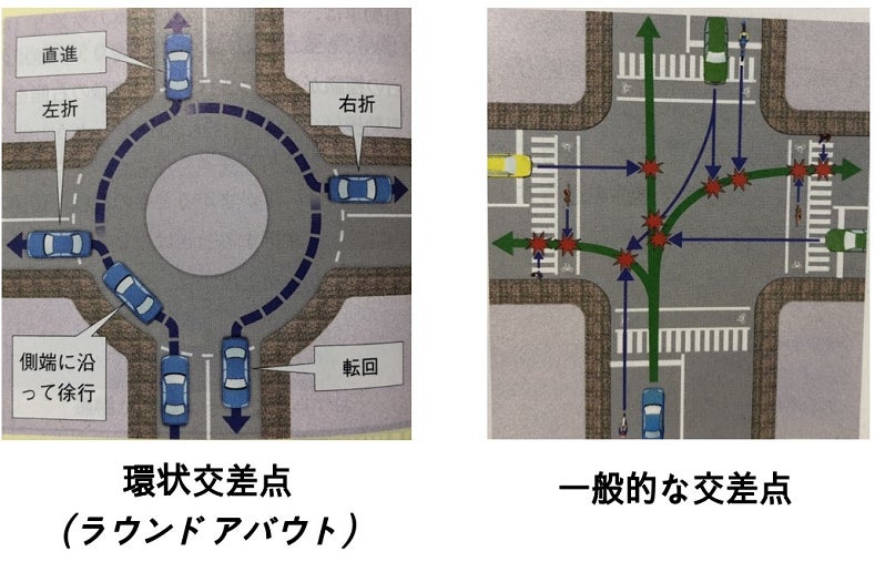 まずは一般的な交差点と環状交差点を見比べてみましょう!