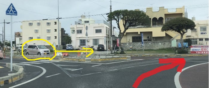 交差点から出る時は、自分が出たい時に左の方向指示器を出し、出るまで継続すること(^^)/ 交差点に入る時は方向指示器を出さないが、出る時は出すが特徴ですねぇ~(^^)/ また出る時にも横断歩道があるので、歩行者に十分注意して徐行しながら交差点から出るようにしましょうねぇ~(*^-^*)