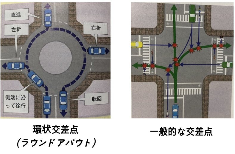 見てもわかるように、一般的な交差点は複雑なのに対して、環状交差点はシンプルですよねっ(^^)/