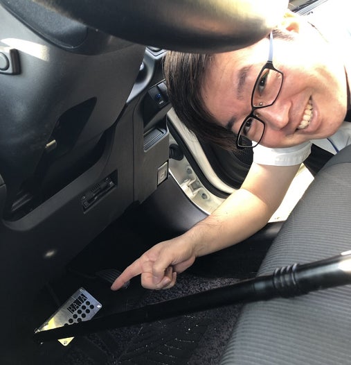 皆さん こんばんは(*^-^*) 運転の練習と言えば、自動車学校をイメージすると思いますが、私たち運転サポート業を行っている事業所でも練習(教習)が可能です(^_-)- 自動車学校と違ったところは、お客様の日程に合わせて、指定の場所(自宅など)・時間に指導員が直接お伺いして、その場所から教習が開始できるという大きなメリットがあります!(^^)! でも自宅に教習車はないから練習できないんじゃないか!?と思われる方もいますが(^^)/ お客様の車に”簡易補助ブレーキ”を取り付ければマイカーでの練習が可能になります!(^^)! このように、お客様の車のブレーキペダルに簡易補助ブレーキを取り付けることにより、万が一に備えてブレーキがかけれるので安心して乗ることができます(^^ ※急ブレーキを避けるため、前もって危険回避の声掛け指導を徹底しています!! お客様からは、①「この杖みたいなもので何をするんですか?」 ②「これで大丈夫なんですか!?止まれるんですか!?」 ③「私はブレーキするとき、どこを踏んだらいいんですか?」と不思議そうに色々な質問をしてきます(^^)/ 見たことがないもだから、不思議だし不安ですよねっ( ;∀;) この杖みたいな物をブレーキペダルに取り付けることで、簡易補助ブレーキの役割となり助手席側からブレーキをかけることが可能になります。お客様自身も普通にブレーキペダルに取り付けてある簡易補助ブレーキの板を踏んでもらえれば、ブレーキをかけることができます(^^) 万が一の時に備えて止まれるか心配とは思いますが、今までの出張教習で急ブレーキをかけた場面は一度もないですよっ! そういう場面になる前に声掛けを徹底しています!(^^)! 教習後にお客様から感想を聞くと、「特に違和感もなく、運転する事ができました!逆に安心でした!」との声を頂いております(*^-^*) また身障者の方で車を改造したけど、改造後の初乗り運転が”不安” ”怖い”という方でも、この簡易補助ブレーキを使用することで教習が可能です! お客様自身で走りたい道のセッティングも可能で、例えば→”自宅から買い物先” ”自宅から学校” ”自宅から通勤”と色々な用途に合わせて対応できるのが、私たちのサービスになっております(^^ 多くの人に知ってもらえたら嬉しいです(*^-^*) 最後までお読み頂きありがとうございます(^^