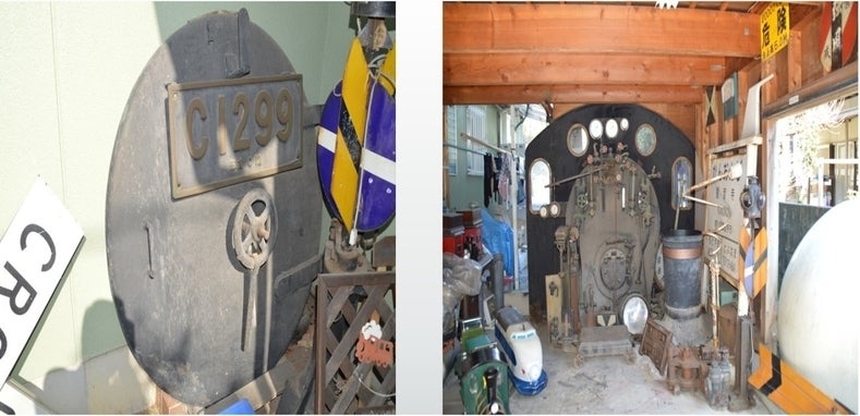 18世紀後半イギリスで始まった蒸気機関の発明を中心とする産業革命は、経済・生活の様相を劇的に変え、とりわけ蒸気機関車によって人や物資の移動手段に変革をもたらしました。蒸気機関車はその後150有予年に渡り世界中の産業文化を支えてきました。蒸気機関車は単なる機械に有らず、蒸気による体温のようなぬくもり、坂道であえぐ姿、その扱い方などにより、その日その時の動きや表情が違う、人間が作ったものの中で最も人間らしい機械と称されます。第一線から引退して久しいですが、現在でも熱烈なファンが多く、各地で復活運行が行われています。私は、SLの動輪やナンバープレートをはじめ多くの部品を保有しています。