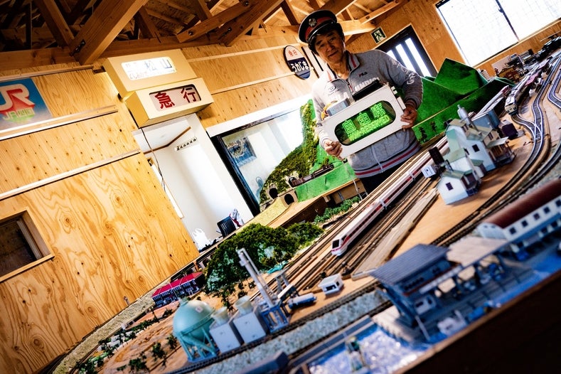 3.ジオラマ鉄道模型を走らせ、眺めながら飲食