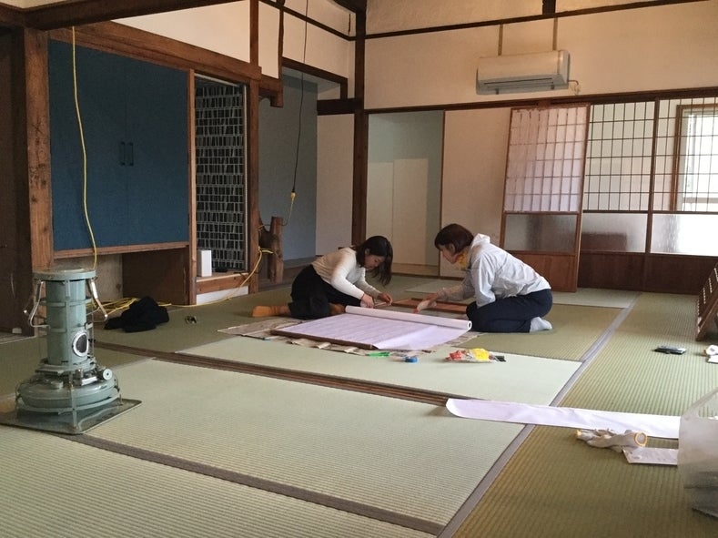 ▲完成目前 障子をお手伝いして頂きました。(アリガトウ)
