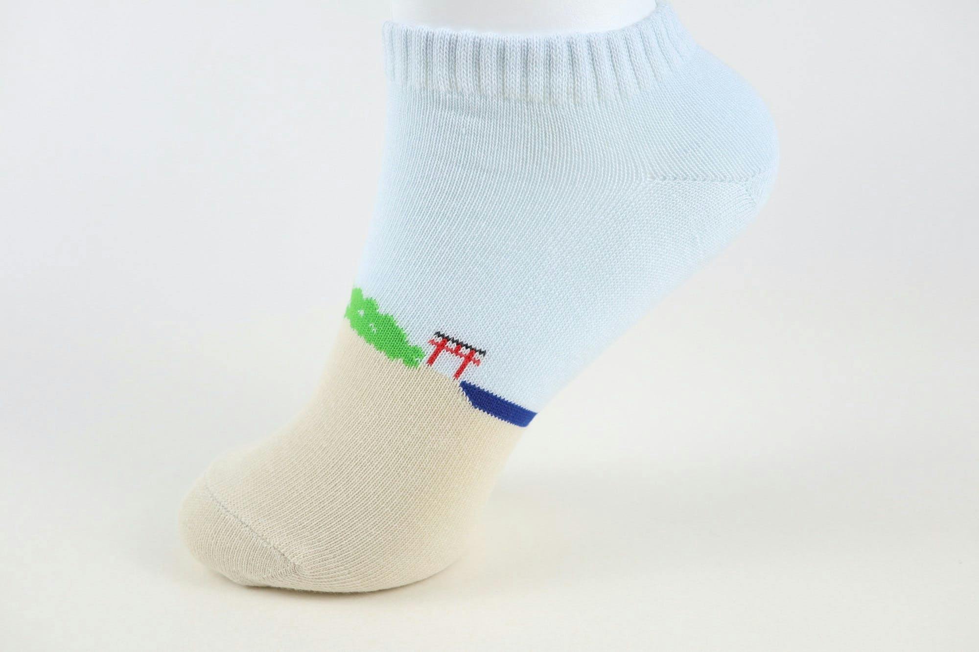 僕が初めてデザインした宮崎靴下、青島スニーカーソックスです。現在販売中なんですが、今度はこの上、新しい感想を加えてみました。雨の日もそれないに魅力があるんだと思い、雨の景色を青島の上に描きました。晴れる日も雨の日も、青島は美しいです。