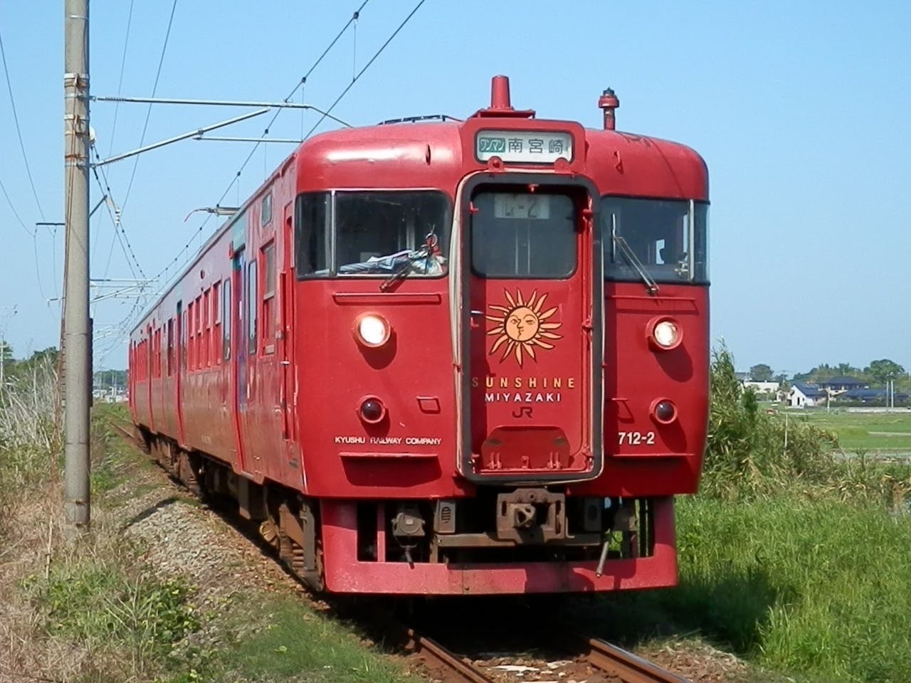 宮崎の印象と言えば、色んな物事があるのですがやはり空港に着いたら最初に出会うのはこの713系電車だと思います。車体は赤をベースに、前面・側面に「SUNSHINE」のロゴがデザインされています。そのSUNSHINEを僕も採用してみました。皆様に宮崎の暖かさをお伝えしたいと思います。