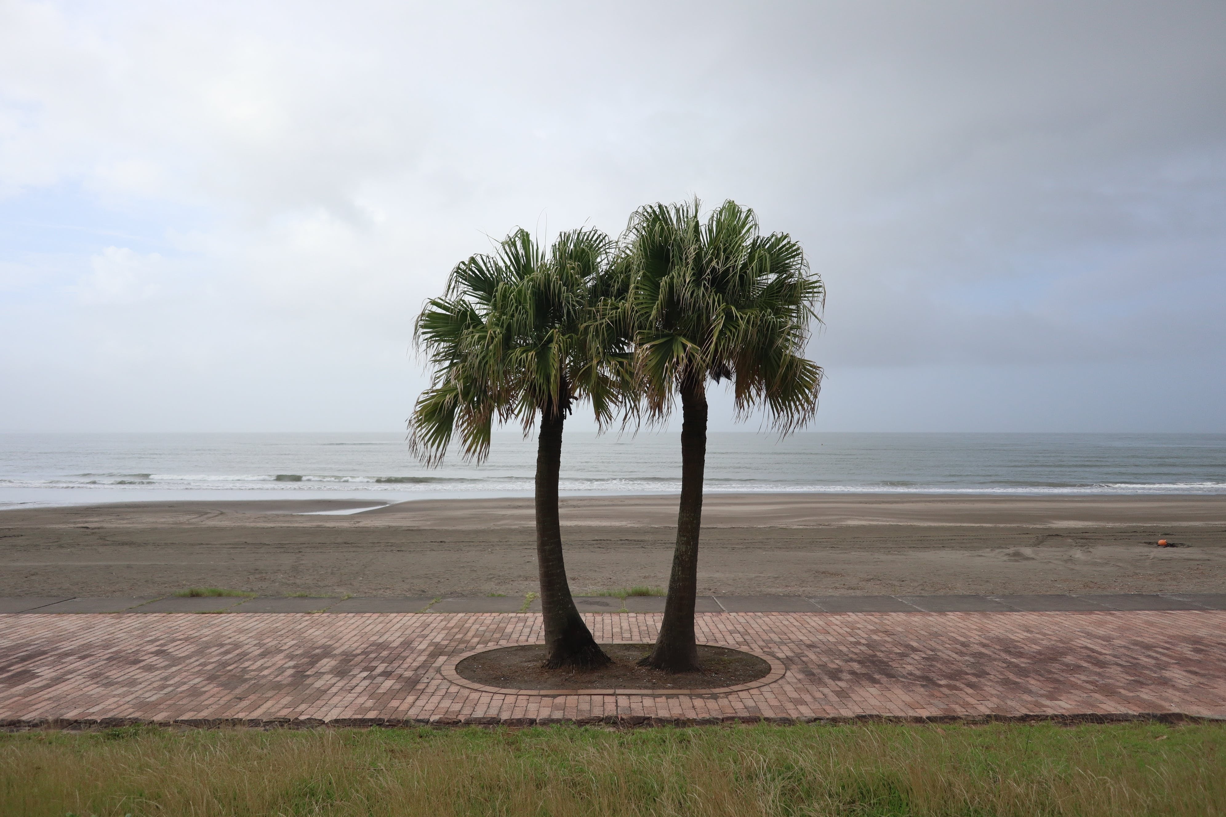 上の写真は僕が直接に撮った写真です。南国風の宮崎の景色を代表するのはこのヤシの木!ヤシの木が並んでる海辺を歩く道中、しばらくベンチに座って、ヤシ木陰で休むこと。そんな平和的な気持ちを皆様に!