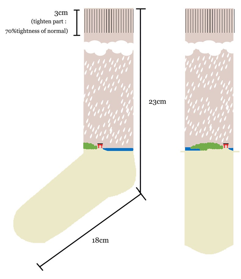 僕が初めてデザインした宮崎靴下、青島スニーカーソックスです。現在販売中なんですが、今度はこの上、新しい感想を加えてみました。雨の日もそれないに魅力があるんだと思い、雨の景色を青島の上に描きました。晴れる日も雨の日も、青島は美しいです。