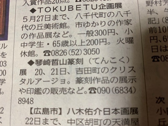 篆刻展の告知を、載せていただくことができました。