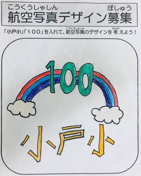 このスローガンは、小戸小学校全児童に航空写真デザインを募集した中から選ばれたイラストとメッセージを元に決まりました!