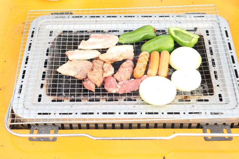 写真ではコンロは置かれていないですが、区画ごとに置かれているので自分達で焼いて下さい。
