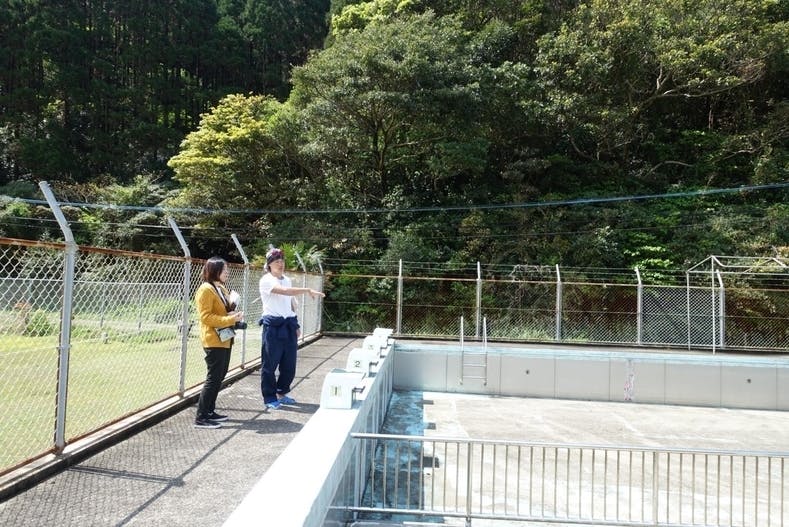 (※実際に養殖場となるプールも見学していただきましたよ。)