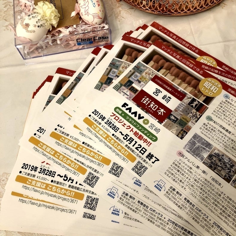 クラウドファンディングのフライヤーを作成しました。これからがんばって配りたいと思います!! 配布にご協力頂けるお店や団体さんも募集しています。ぜひご協力ください。 クラウドファンディングを開始してから1週間を過ぎ、現在(2019年4月7日時点)で11名の方からご支援を頂いております。周りの反応も上々でスタッフ一同ホッとしているところです。 周りからはクラウドファンディングはスタートが肝心だと言われていますが、内容を良く見て頂き徐々に支援が広がるスロースターターなプロジェクトだと思いますのでまずまずのすべり出しではないかと思っているところです。 支援もですが、できるだけ多くの方に知って頂けるととてもありがたいです。フライヤーもた〜くさん用意しました。配布等引き続きご協力頂けますと幸いです。 20世紀の宮崎遺産アーカイブ 事務局