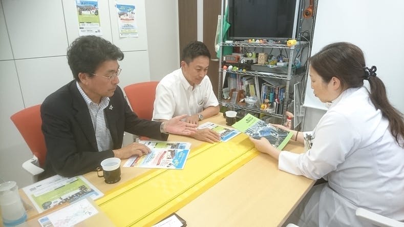 PSSの竪石さんを通じて本プロジェクトに賛同し、ご支援をいただき、当日のもしもの熱中症対応に手を挙げてくださいましたはら岡医院にお礼とプロジェクトの説明にお邪魔しました。