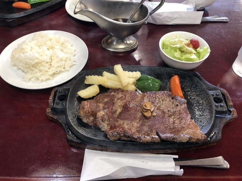 黙々と食べもう終わると、もう何も無い鉄板には湯気だけが残っています。満足から満腹のひと時