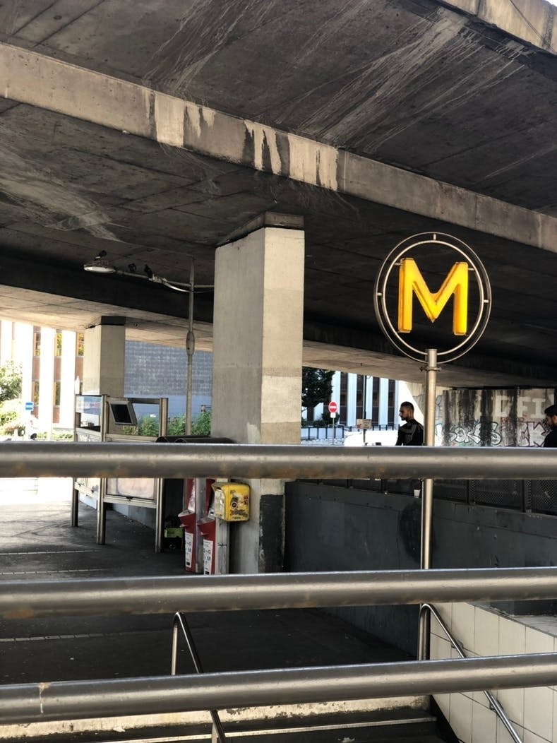 こちらのMがメトロ乗り場の目印。