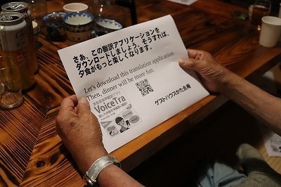 外国人が持っているスマートフォンにこのアプリのアドレスをQRコードでポイントしてダウンロードするだけで意思疎通が可能です。