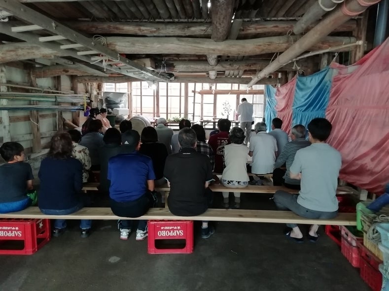 神事の前には、参道を地域総出で修復していましたが、その作業も負担が大きく3年前から下の舟屋で神事を行うようになりました。