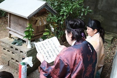 女性の宮司さんが二人こられ、岬さんの神事を行いました。