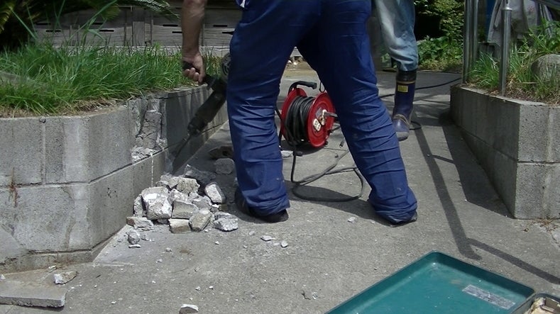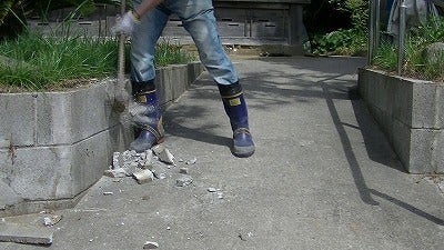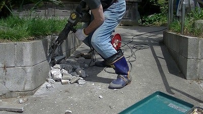ハンマーでやってましたら、お隣のミツユキさんが、コンクリート破砕機貸してあげると声をかけていただきました。