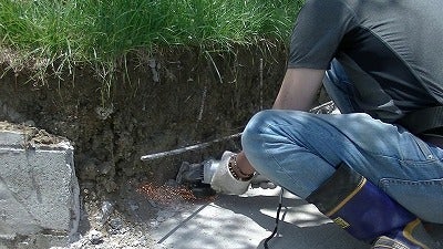 コンクリート内の鉄の骨組みの切断は、リサイクルショップで1000円で買った電動グラインダーが活躍しました。
