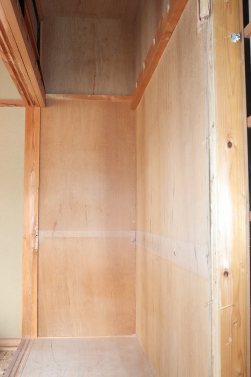 この押し入れがトイレになります。こちら側は工事後新たに壁を作り、右方向が入り口になります。