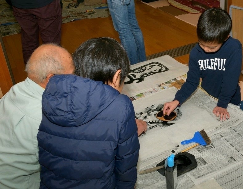 凧に使う和紙には、自分で好きな絵を描いたり、版画を摺る体験もできました!