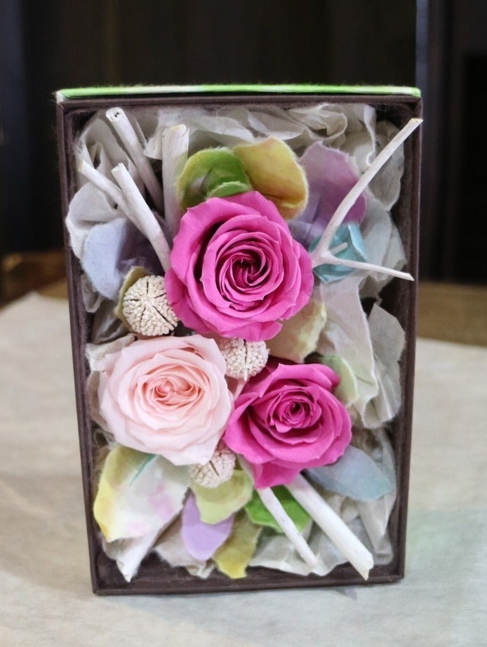 今回ご紹介するのは、「樫西和紙とプリザーブドフラワーのアレンジメント」