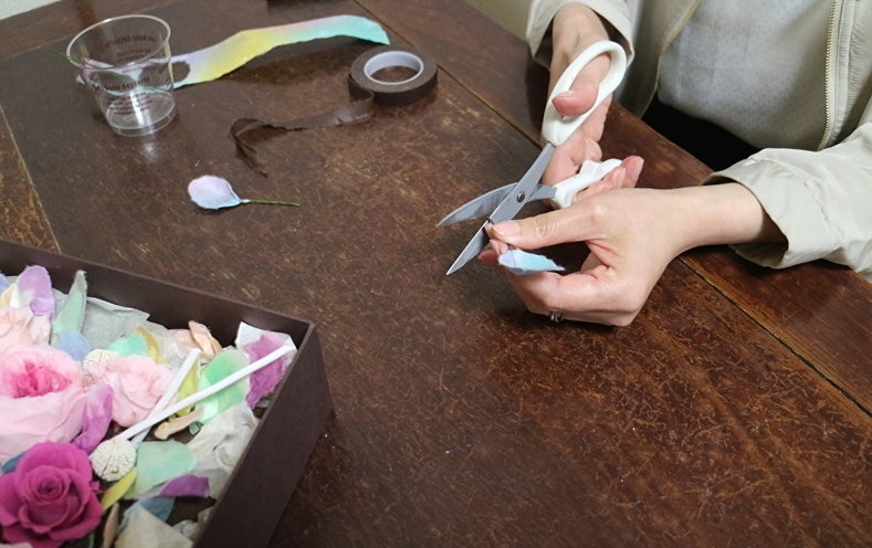 プリザーブドフラワーアレンジメント制作風景です!