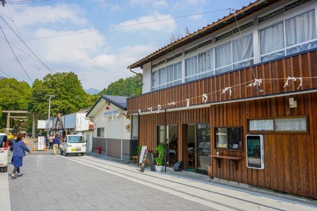 お店は天岩戸神社東本宮の大鳥居から徒歩30秒、門前通りの中程にあります。